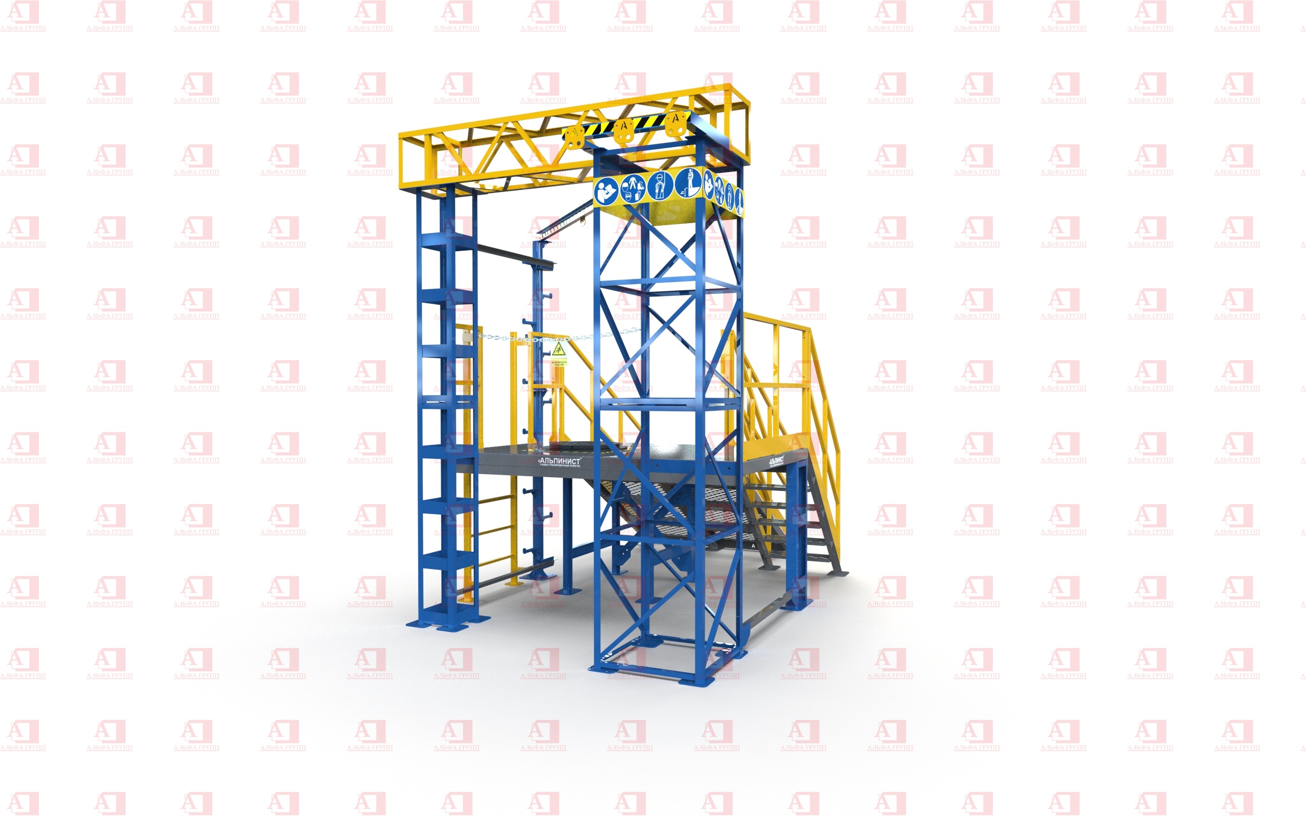 Доступ на рабочую площадку второго уровня осуществляется по стальной маршевой лестнице.
