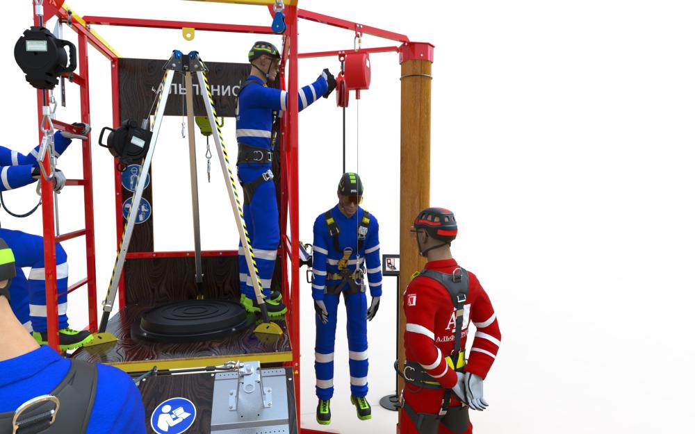 Учебный центр ООО «УЦ НГК» в г. Омск для практических занятий работы на высоте и в замкнутых пространствах используют учебный полигон "АЛЬПИНИСТ" -02